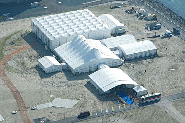 If you are looking for that ‘something different’ in temporary structures; then the Ocean will make sure that your event stands out. Its striking waving membrane roof provides 4m height at the sides rising to no less than 12.5m; making it the ideal temporary structure for presentations, exhibitions, and conferences.